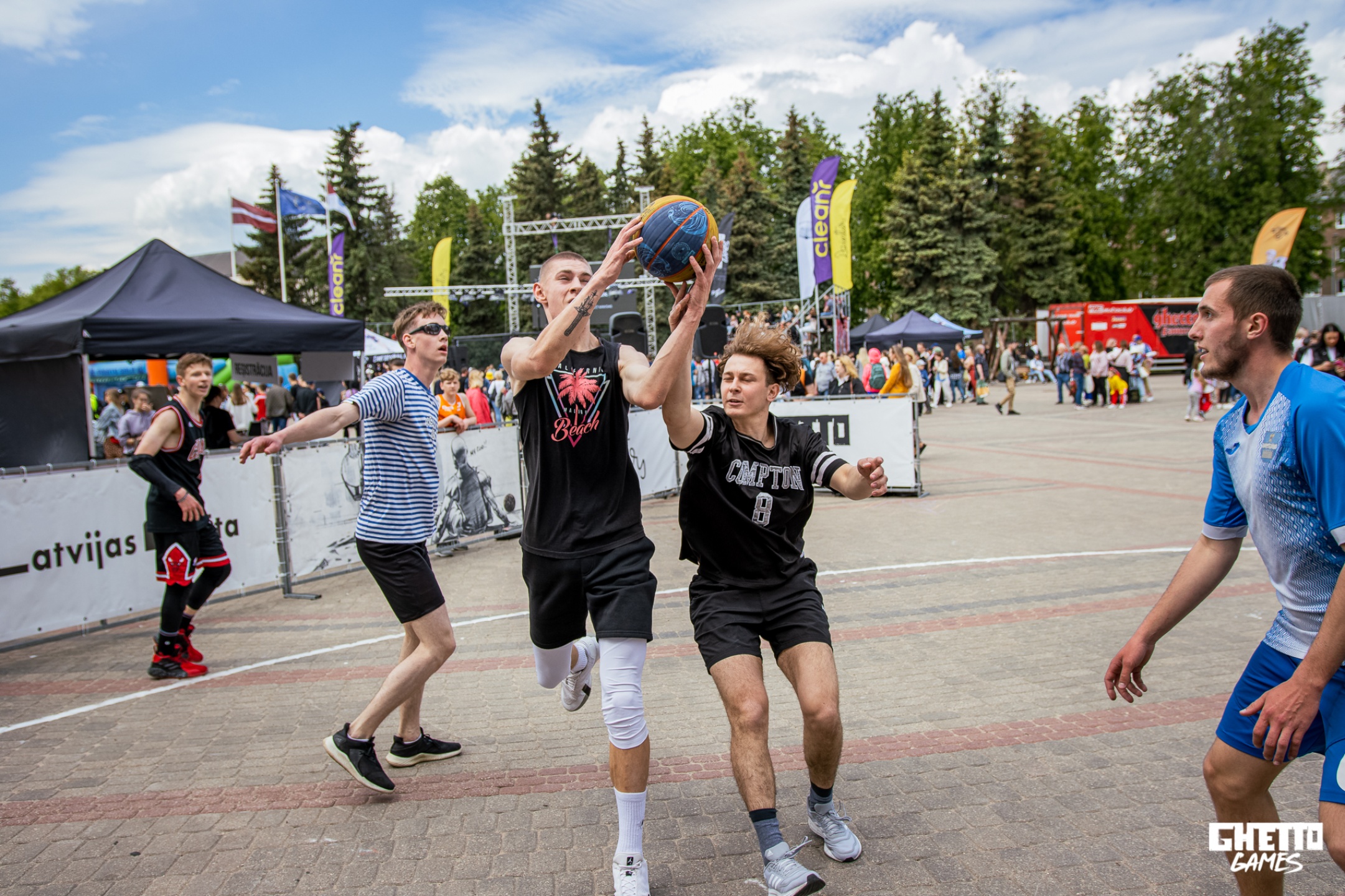 Ghetto Basket, šajā turnīrā, lietus apstākļu dēļ jauniešu Slam Dunk atlasi pārcela un citu turnīru, taču pirms lietus labākie U15 jaunie dankotāji priecēja skatītājus ar saviem sniegumiem. Taču, tas nav viss! Turnīrā piedalījās 34 komandas, lielu paldies jāsaka Daugavpils lēdijām par atsaucību turnīrā! Paralēli regulārajam turnīram vecākajā vecuma grupā dalībnieki cīnījas par Latvijas 3x3 basketbola kausa finālturnīra biļeti, kuru izcīnija komanda “Jēkabpils”! Vēlreiz ar uzvaru sveicam: U11 grupā komandu “Riekstkoži”, U13 grupā komandu “NTG”, U13 meiteņu grupā komandu “Ukraina-Krāslava”, U15 grupā “Tallinas Kvartāls”, U15 meiteņu grupā “Black Mambas”, U17 grupā “Vitālijs”, U17 meiteņu grupā komandu “Daugavpils”, bet Lēdiju grupā komandu “All Cash”!