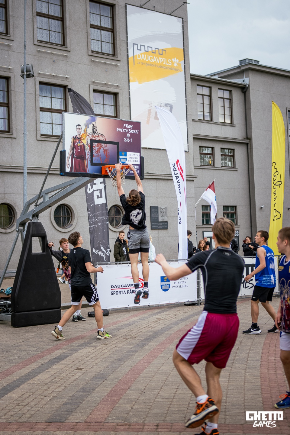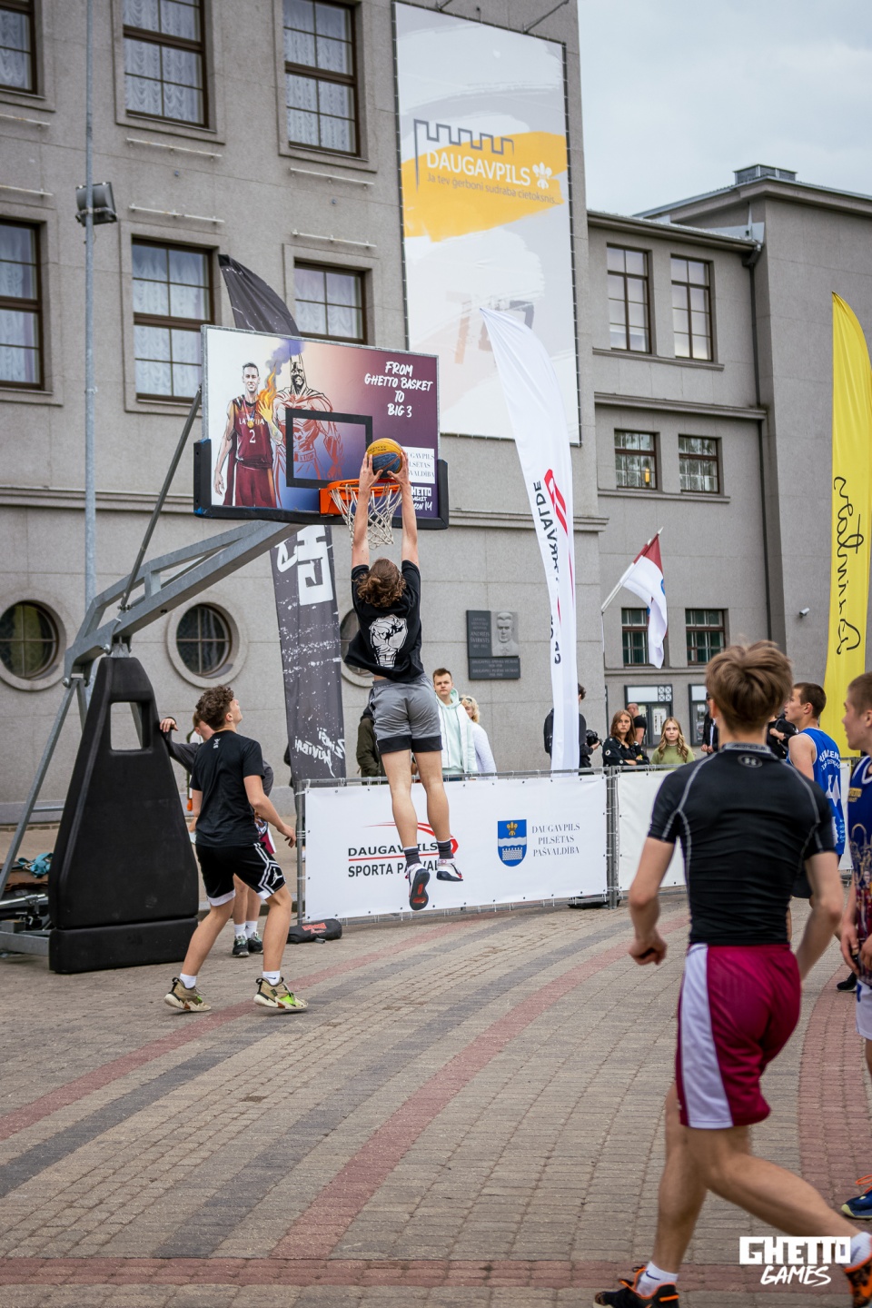 Ghetto Basket, šajā turnīrā, lietus apstākļu dēļ jauniešu Slam Dunk atlasi pārcela un citu turnīru, taču pirms lietus labākie U15 jaunie dankotāji priecēja skatītājus ar saviem sniegumiem. Taču, tas nav viss! Turnīrā piedalījās 34 komandas, lielu paldies jāsaka Daugavpils lēdijām par atsaucību turnīrā! Paralēli regulārajam turnīram vecākajā vecuma grupā dalībnieki cīnījas par Latvijas 3x3 basketbola kausa finālturnīra biļeti, kuru izcīnija komanda “Jēkabpils”! Vēlreiz ar uzvaru sveicam: U11 grupā komandu “Riekstkoži”, U13 grupā komandu “NTG”, U13 meiteņu grupā komandu “Ukraina-Krāslava”, U15 grupā “Tallinas Kvartāls”, U15 meiteņu grupā “Black Mambas”, U17 grupā “Vitālijs”, U17 meiteņu grupā komandu “Daugavpils”, bet Lēdiju grupā komandu “All Cash”!