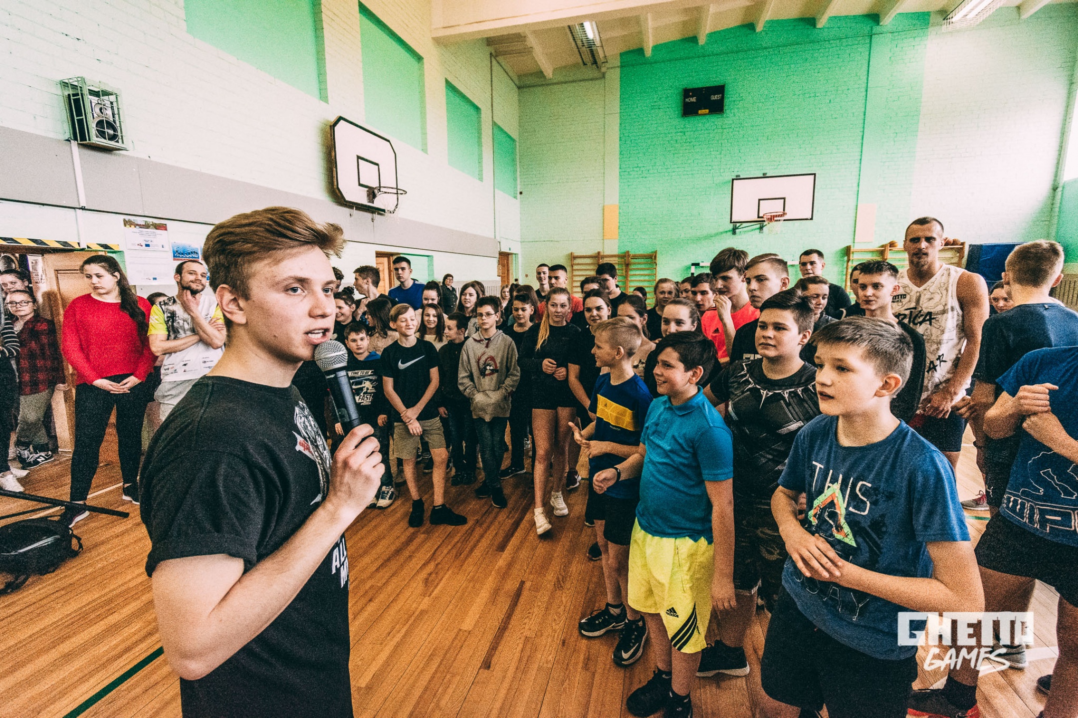 *No 18. janvāra līdz 12. aprīlīm katru piektdienu Ghetto Games komanda dodas uz Latvijas skolām, lai klātienē kopā ar jauniešiem aizvadītu fiziski aktīvu un mentāli piepildītu dienu.