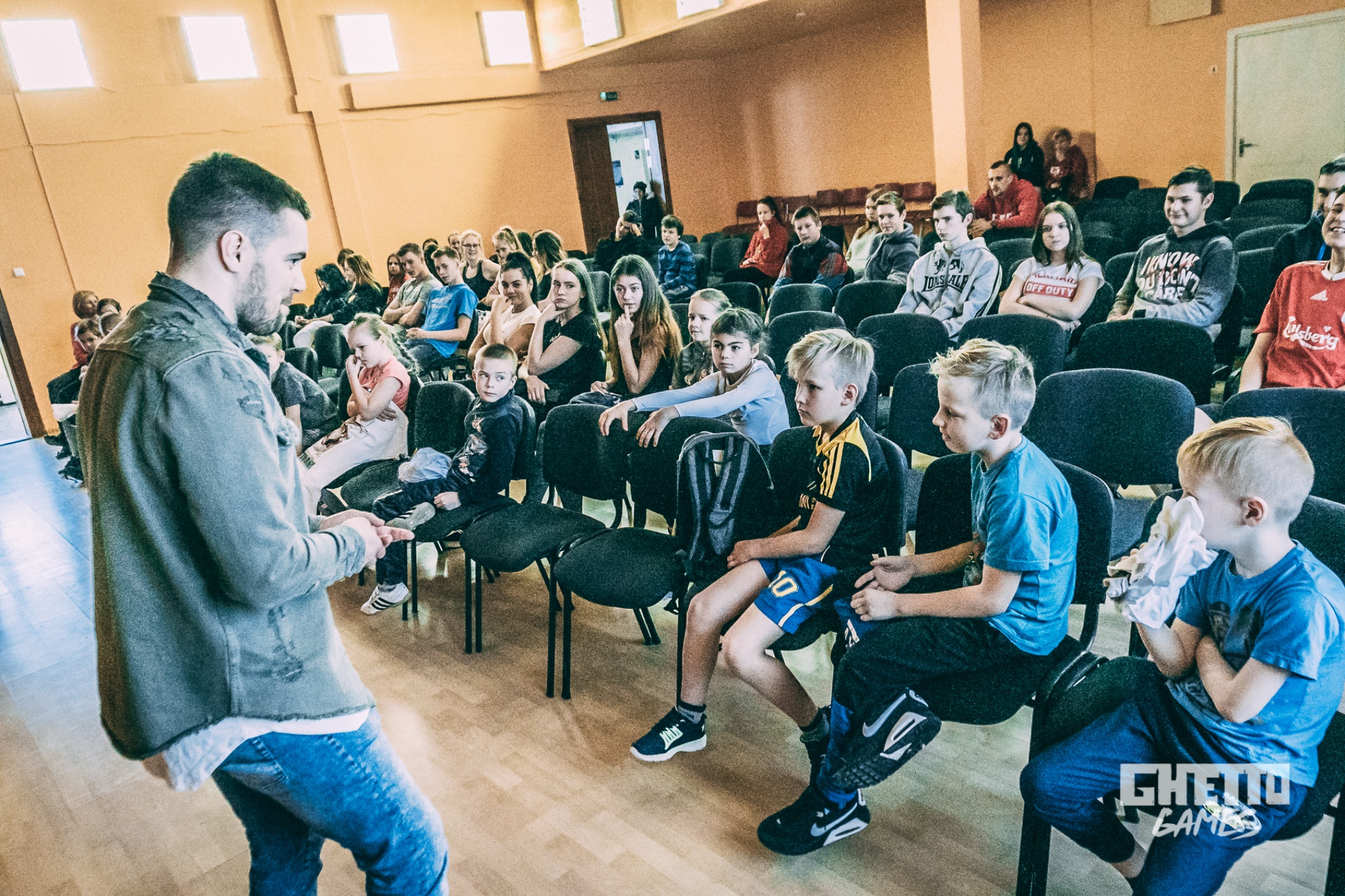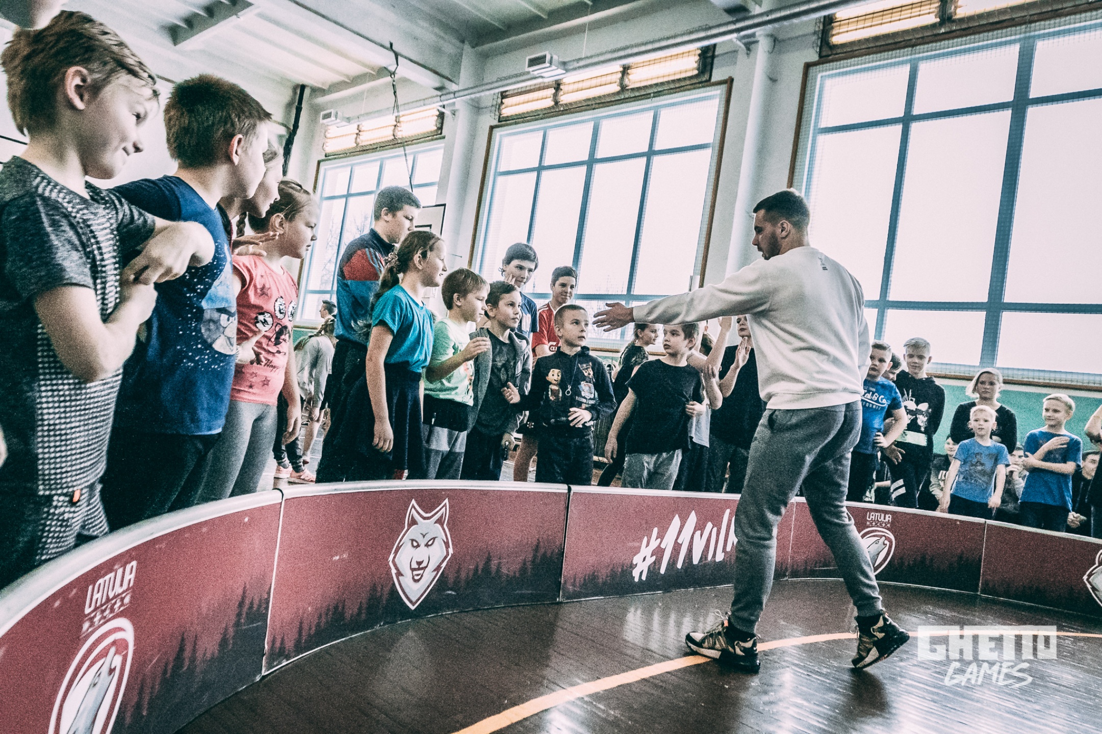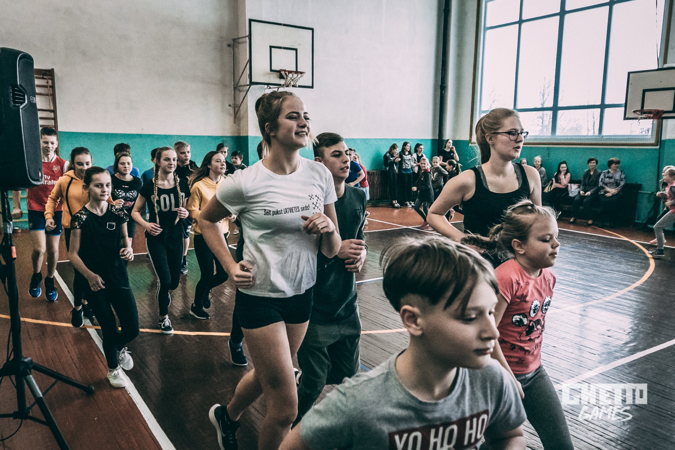 *No 18. janvāra līdz 12. aprīlīm katru piektdienu Ghetto Games komanda dodas uz Latvijas skolām, lai klātienē kopā ar jauniešiem aizvadītu fiziski aktīvu un mentāli piepildītu dienu.