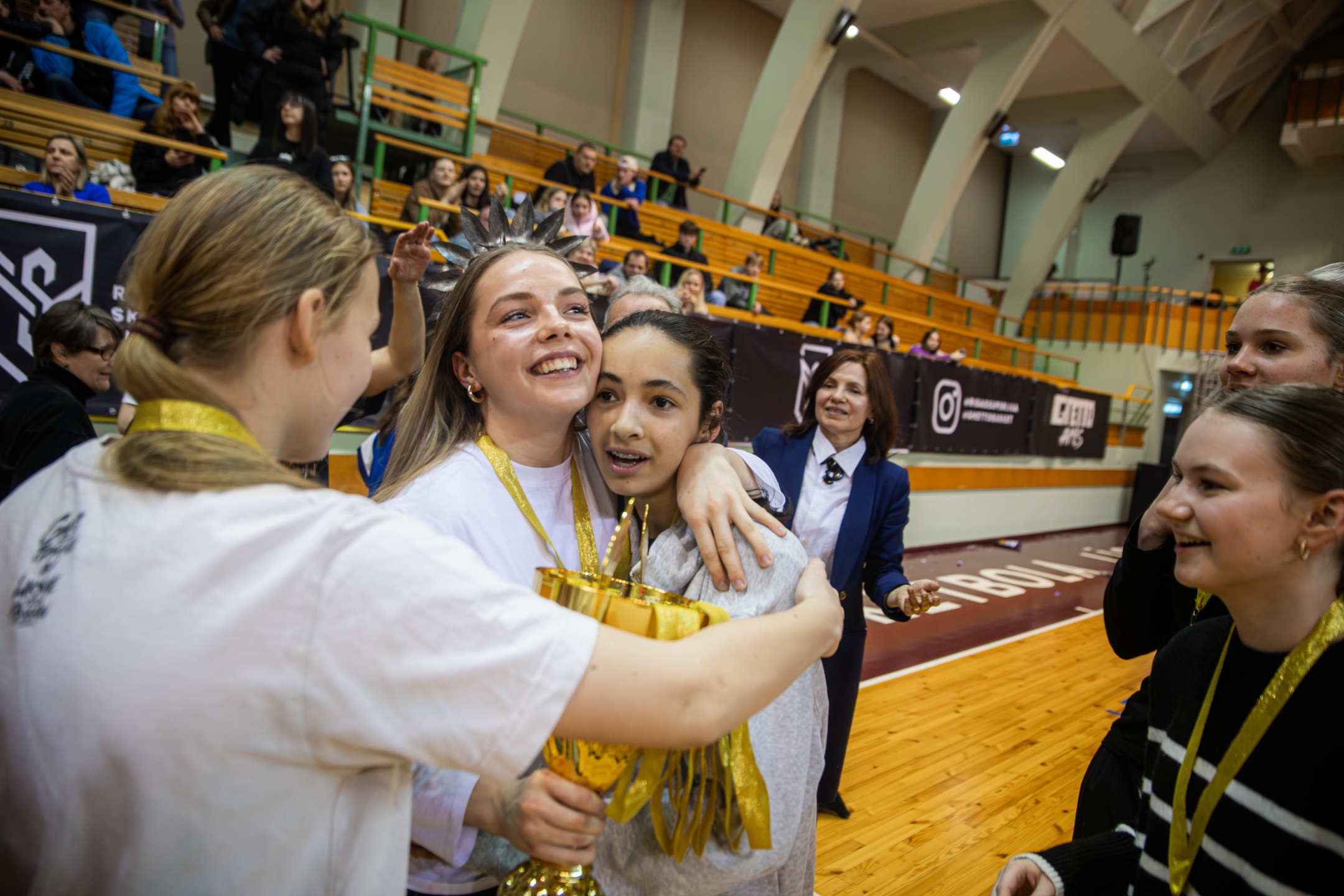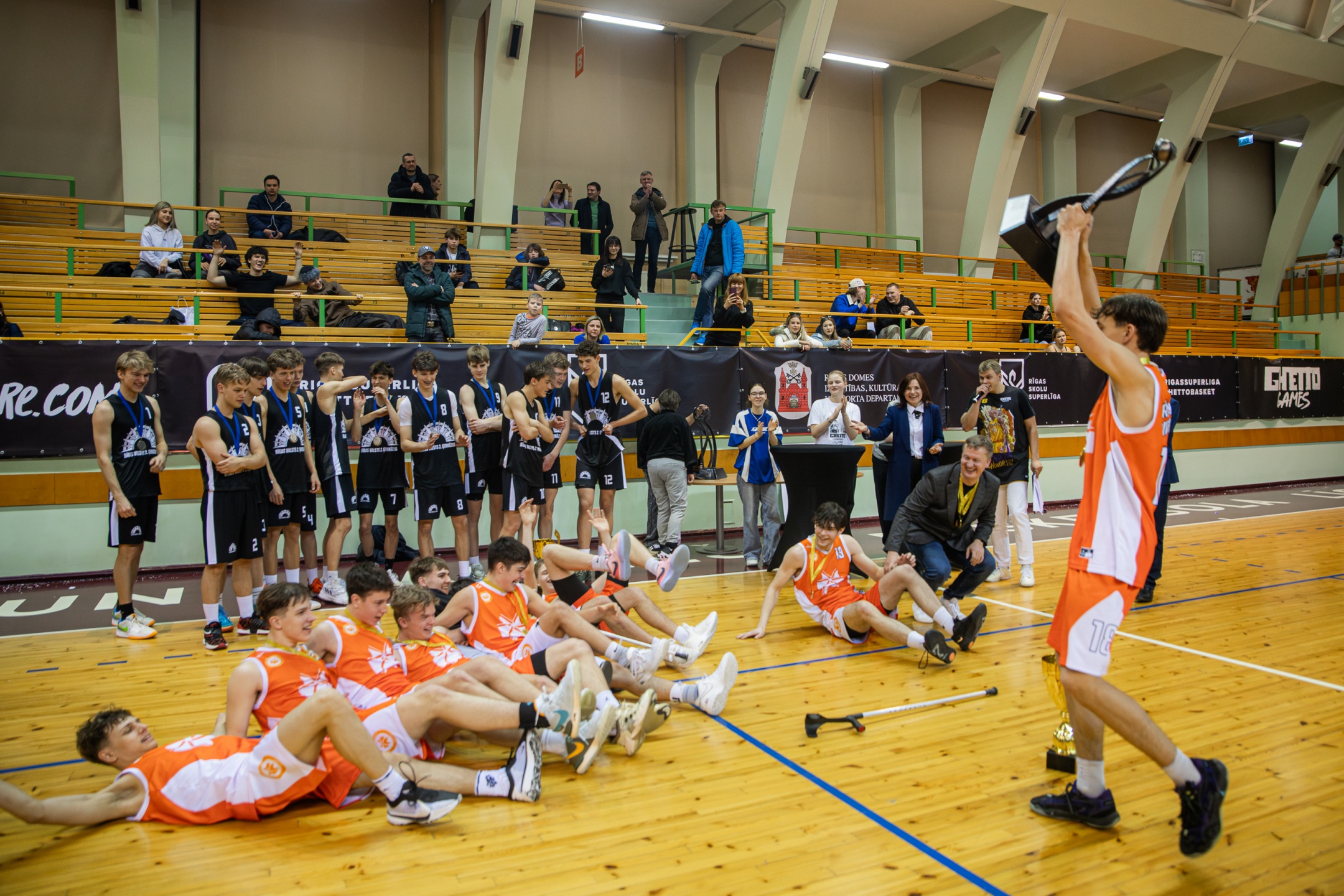 Rīgas skolu superlīgas finālos noskaidroti čempioni pārpildītā Daugavas Sporta Namā